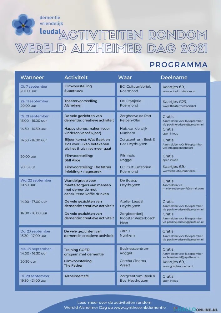 Naast de campagne vinden er diverse activiteiten plaats. Kijk voor meer informatie, tools en een overzicht van alle activiteiten op www.synthese.nl/dementie.
