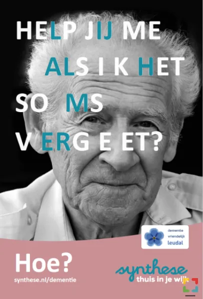 Medio september publiceert Synthese in het kader van dementievriendelijk Leudal een campagne om aandacht te vragen voor een dementievriendelijke samenleving. Ze roepen jou, je vrienden, je familieleden, je collega’s en je clubleden op een oogje in het zeil te houden. Kom je iemand tegen die verward is? Die de weg naar huis niet meer weet, niet meer zo goed mee kan in het vrijwilligerswerk of telkens zijn of haar portemonnee vergeet? Steek je hand uit. Doe een boodschap voor je buurvrouw, help de ander om mee te kunnen blijven doen of wandel even mee naar huis. Voor jou een kleine moeite, voor hen een groot gebaar!
