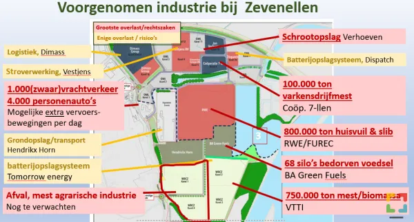 Dat de provincie Limburg het MER-advies negeert verbaast ons en vele bewoners van Midden Limburg ten zeerste. Dit omdat op Zevenellen zich niet alleen de huisvuil- en slibverwerkende fabriek van RWE/FUREC fabriek zich wil vestigen, maar ook meerdere afvalverwerkende fabrieken zoals twee grote mestverwerkers (waarvan één de grootste van Nederland), een bedrijf met 68 silo’s met bedorven afval uit de voedingsindustrie, schrootopslag enz. (zie de afbeelding onder aan deze brief met de plannen voor Zevenellen).