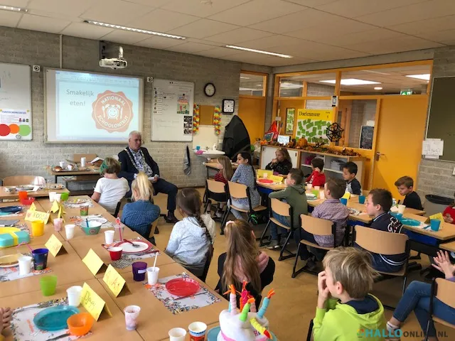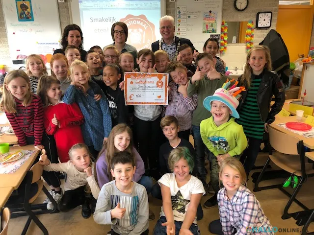 Met het thema ‘Een feestje voor iedereen!’ laten Stichting Kinderpostzegels en het Nationaal Schoolontbijt zien dat een feestje pas een feestje is als iedereen erbij hoort. Stichting Kinderpostzegels ondersteunt daarom ook het project met verjaardagsfeestjes voor de héle klas, waarbij kinderen spelenderwijs leren dat het leuk is dat iedereen anders is. De leerlingen uit groep 5 namen de cheque met een bedrag van € 100 in ontvangst. Locoburgemeester Arno Walraven kijkt met plezier terug op de bijzondere ontbijtontmoeting.