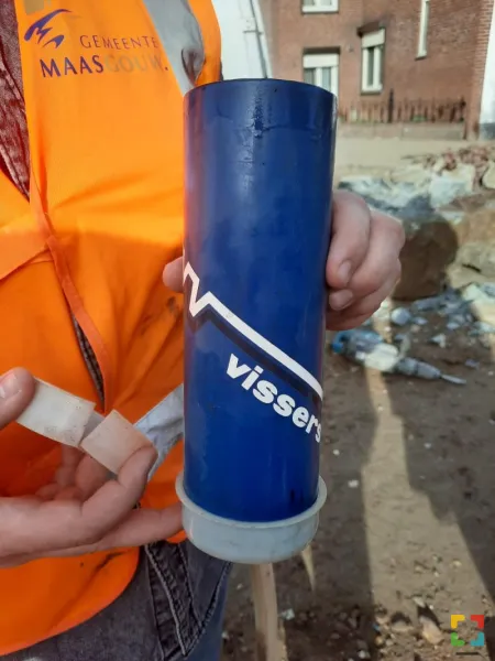 Extra spannend was een oorkonde die volgens een oud krantenartikel van ongeveer 35 jaar geleden in de fundering van de waterpomp zou moeten zitten. Er werd besloten om op zoek te gaan naar die oorkonde. Vakkundig werd de betonnen rand met daarin de vermoedelijke oorkonde gesloopt. Maar al snel werd duidelijk dat er niet veel over was van de oorkonde. De capsule waarin de oorkonde zat stond vol met water en er werd voor het ergste gevreesd. Een klein stukje papier was nog over. Van de tekst op de oorkonde was niets meer te lezen.