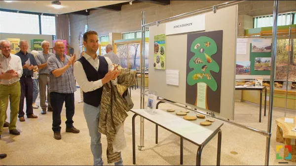 Na het wegtrekken van een doek van boomstammen door Martijn van den Heuvel werd het gedicht BomenDromen zichtbaar. Dat werd voorgedragen door een van de vrijwilligers en na een dankwoord van de wethouder konden alle gasten de tentoonstelling bekijken. Deze laat zien dat bomen veel en belangrijke functies hebben.