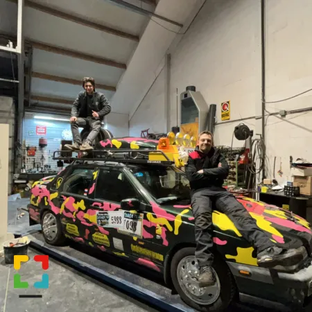 Ben en Tom delen dezelfde passie voor auto’s. Beiden zijn geboren in 2002 en opgeleid tot automonteur. Ben in Helmond en Tom in Maaseik. Ze noemen zich ‘TEAMLOLVO’ en die naam geeft aan dat ze liefhebbers van een lolletje zijn én ook van hun oude Volvo. Deze oude groene Volvo, ooit gebouwd voor een zogenaamde garbagerun, staat buiten voor de garagedeur geparkeerd en blijkt royaal beplakt te zijn met grote roze en knalgele stickers. Het is een echte barrel, vrij vertaald uit het Engels: Een auto met gebreken. Alleen met dergelijke auto’s mag je meedoen aan de Barrel Challenge. “De auto mag dan ook niet meer dan 1000 euro aan dagwaarde hebben”, weet Ben en hij vertelt aanvullend dat het een ‘vijf cilinder’ betreft met slechts 140 pk aan vermogen.