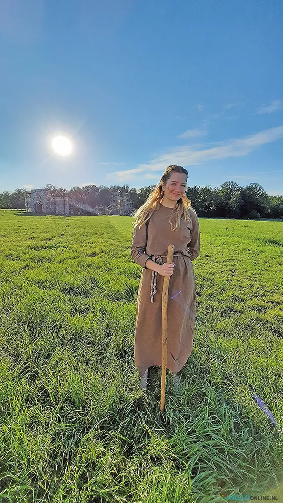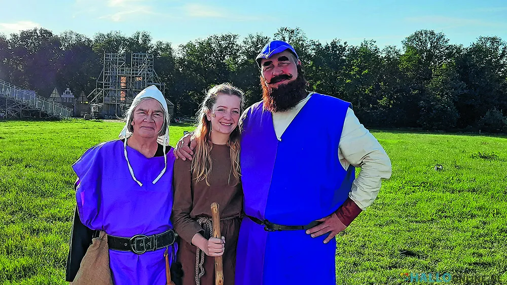 Het lijkt een vrij unieke situatie dat een oma, haar schoonzoon en haar kleidochter samen op de bühne staan. Voor oma Fransje Lemmen, haar schoonzoon Rob van Leeuwen en diens dochter Maud is het echter de normaalste zaak van de wereld; ze hebben dit al vaker gedaan. Deze keer maakt het drietal uit Horn deel uit van de ‘Limburgse cast’ van de toneelproductie ‘Strijd om de Kathedraal’ naar het gelijknamige boek van kinderboekenschrijver Jacques Vriens. Maud van Leeuwen (19) is in de huid gekropen van de blinde Mette. Zij is met die rol een van de hoofdrolspelers van dit groots opgezette theaterstuk, waar maar liefst 120 mensen aan meewerken, waarvan tachtig acteurs en actrices. Naast de drie familieleden uit Horn, maken ook o.a. Antoinette Rooswinkel (Horn), Wies Clout (Roggel) en Lisa Raemakers (Kelpen-Oler), deel uit van de cast die voor het merendeel uit Brabanders bestaat. Hallo Magazine sprak tussen de optredens door met de toneelspelende familieleden uit Horn en met Wies Clout die als kaarsenverkoopster in dit middeleeuws drama een figurantenrol vervult. “Maar geen onbelangrijke”, lacht Wies, “Ik breng per slot van rekening met mijn kaarsen het licht in de wereld.”