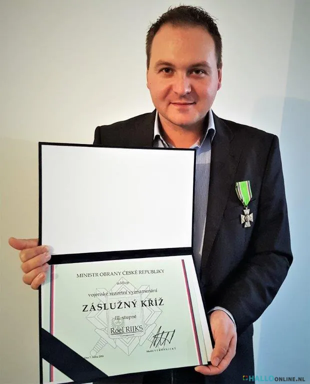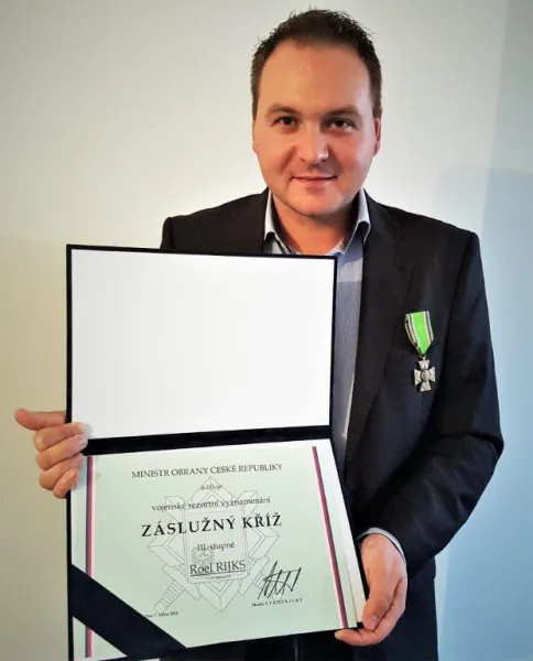 In oktober vorig jaar moest Roel er namelijk toch aan geloven: uit handen van Majoor Jindrich Plescher en uit naam van de Minister van Defensie van Tsjechië, kreeg hij het Erekruis van Verdienste Derde Klasse. Het Erekruis is een bijzondere ministeriële onderscheiding, voor personen die zich uitzonderlijk verdienstelijk hebben gemaakt voor de Tsjechische krijgsmacht. Roel was dan ook één van de initiators van een monument dat enkele jaren geleden in Petten werd onthuld, ter nagedachtenis aan een daar gecrashte bommenwerper met Tsjechische bemanning. Bovendien houdt Roel zich ook al jaren bezig met onderzoek naar crashes, onder andere die van een Tsjechische Wellington in Baexem.