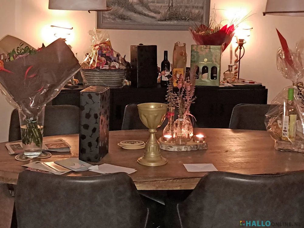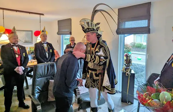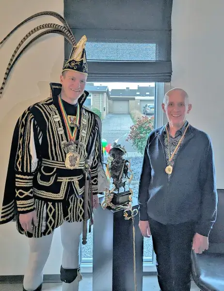 “Kijk maar niet naar de rommel”, zegt Johns echtgenote Henny. “Het was hier het hele weekend volle bak en van opruimen is nog niet veel gekomen.” Met die rommel valt het overigens in huize van Bilsen best mee. Het zijn meer de versieringen in de kleuren rood, geel en groen, bloemen, kaarten en cadeaus die de woonkamer van de familie van Bilsen domineren. Voor een raam aan de straatkant staat pontificaal de grote wisseltrofee die John van Bilsen met zijn eerste plaats bij het kampioenschap in de wacht wist te slepen. Op de huiskamertafel staat de koperen kelk van hulppastoor van Bilsen. Kort voor zijn optreden heeft hij er voor wat mentale ondersteuning portretjes van zijn kleinkinderen in geplakt. Terugblikkend op zijn prestatie zitten John en Henny op deze vroege maandagmorgen nog volop na te genieten. Veel rust zullen ze de komende tijd niet krijgen. Johns overwinning is hot news en de aanvragen voor een optreden van de kampioen stromen binnen. “Niet alleen voor dit carnavalsseizoen, maar ook al voor 2025 en 2026”, weet Henny die de agenda van John beheert.