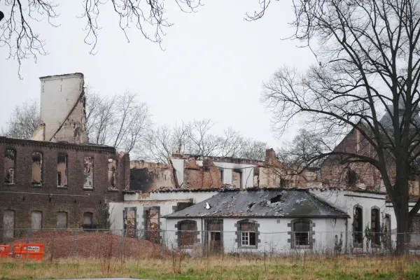 In 1960 wordt met name de noord-oostvleugel van het gebouwencomplex getroffen door een hevige uitslaande brand en wordt dat deel van het complex afgebroken.