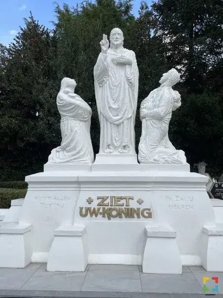 Misschien heeft u zich wel eens afgevraagd waar al die meer dan manshoge H. Hartbeelden vandaan komen die op verschillende plaatsen in Limburg en Brabant staan. Deze Christusbeelden zijn gewijd aan het Heilig Hart van Jezus waarbij Christus op meerdere manieren wordt afgebeeld. Vaak zegenend, soms met gespreide armen of met geopende borstkas waarbij het bloedend hart van Jezus zichtbaar is om zo de liefde en het lijden van Jezus te symboliseren.