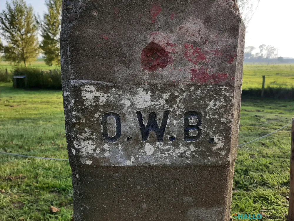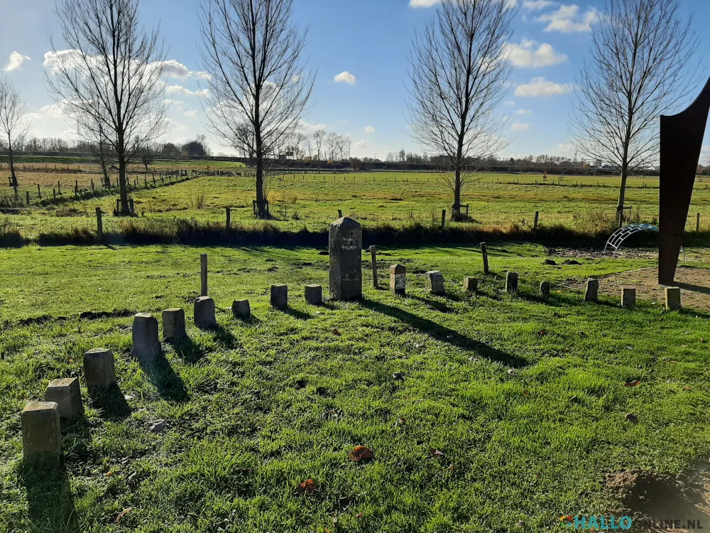 Het zijn 18 oude grensstenen die de vereniging de afgelopen jaren in het bezit heeft gekregen. De grensstenen stonden vroeger in het veld. Rijke boeren hadden hun eigen stenen om hun land af te bakenen. Maar er zijn ook stenen afkomstig van de Stroomverkoop Maatschappij, de voorloper van het elektriciteitsbedrijf PLEM, te herkennen aan de afkorting SVM. De middelste en grootste grenssteen met het opschrift O.W.B. is van Rijkswaterstaat.