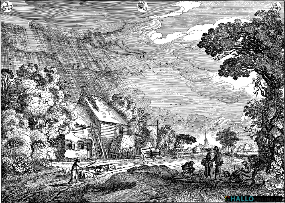 (… ) Te ongeveer kwart over vier pakten zich, nadat ’s morgens reeds een onweer gewoed had, hooge loodblauwe wolkengevaarten aan de zuidwestelijken horizon samen en na verloop van een half uur dreigde ook uit de richting Horn-Haelen een zwaar onweer. Ook van het zuiden en uit het noorden kwamen twee onweders opzetten.
