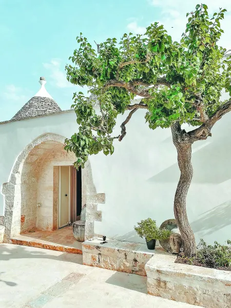 Jeroen Peeters: “Wij wonen in een trullo tussen Martina Franca en Ceglie Messapica. Het is een huis met puntdaken die je alleen in de Valle d’Itria in Puglia tegenkomt. Rondom het huis ligt 5 hectare grond met vooral bos. Wij zijn op deze mooie plek kamers gaan verhuren. Het seizoen voor kamerverhuur loopt zo’n beetje van april tot eind oktober. Dan is het klimaat hier ook echt aangenaam. Normaliter is de temperatuur in de zomermaanden 32 graden. Vanaf september krijg je wel eens wat onweersbuien. Die periode is meestal van korte duur. Doordat Puglia ingeklemd ligt tussen de Ionische en Adriatische zee, hebben we een milde winter. Martina Franca is een welvarende stad met een prachtig historisch centrum. Barokke gebouwen afgewisseld met wit gekalkte straatjes zoals je die ook in onze buurstad Ostun’ ziet. Een cita bianca; een wit stadje dus.