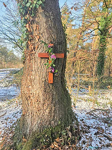 ‘Na verloop van tijd hebben we ervoor gezorgd dat er verlichting kwam op die weg. We wilden gewoon niet dat iemand anders daar ooit iets soortgelijks zou overkomen. Daarnaast wilden we er een gedenkteken voor Rien plaatsen. Er kwam een kruis waar we geregeld bloemen legden. Die verdwenen als eerste. Vreemd, maar ja, je weet niet wat er gebeurd is. Vervolgens werd het kruis beklad, op een manier waarbij de verf niet makkelijk te verwijderen was. Het moest van de boom, opgeschuurd worden en opnieuw geplaatst. De derde keer was het kruis helemaal verdwenen.