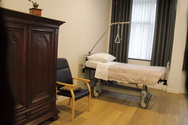 “We hebben achttien kamers ter beschikking waarvan de vier grootste als ‘hospicekamer’ ingericht zijn zo dat er ook voldoende ruimte voor familieleden is ,” vertelt Monique Hageman. “Bij de terminale zorg staan de wensen en de laatste wil van de gastbewoner centraal. Als iemand bijvoorbeeld graag zijn lievelingsstoel hier wil hebben of zijn huisdier op bezoek, dan kan dat. Goed luisteren en aandacht schenken zijn heel belangrijk. Professionele verpleegkundigen zorgen voor een goede medische begeleiding.