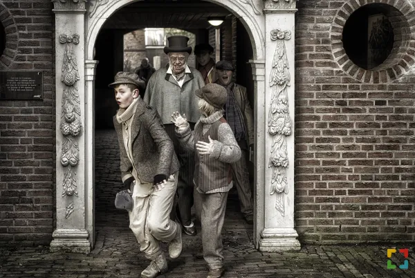Charles Dickens is een 19e -eeuwse Engelse schrijver die tijdens zijn leven al een beroemdheid was in zijn land. Een celebrity zouden we nu zeggen. Hij wordt geboren in 1812 in Rochester. Tien jaar later verhuist het gezin naar Camden Town in Londen. Zijn jeugd is bepaald geen gelukkige. Zijn vader, een ambtenaar, maakt schulden en belandt daardoor in 1824 zelfs in de gevangenis. Het schoolgeld voor de jonge Charles kan niet meer betaald worden. Noodgedwongen gaat de twaalfjarige Charles tien uur per dag onder beroerde arbeidsomstandigheden werken in een schoenpoetsfabriek. Kinderarbeid was destijds – en niet alleen in Engeland maar ook in ons land – nog heel normaal. Op zijn vijftiende krijgt Charles beter werk bij een krant. Dat wordt de start van zijn succesvol schrijverschap. De slechte werkcondities, het onrecht en de armoede uit zijn jeugd zullen later terugkerende thema’s zijn in zijn vele boeken.