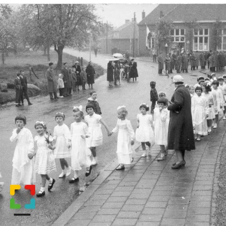 Ze was gewoon te voet onderweg om beide Mariabeelden die bij haar in huis hadden gestaan, bij haar opa en oma in veiligheid te brengen. Het verhaal werd evenwel legendarisch. Nadat enkele jaren de parochiezaal als noodkerk dienst had gedaan, was het opnieuw architect Wielders die de huidige kerk ontwierp.