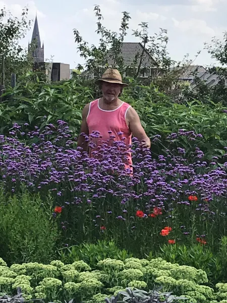 Maar om nu terug te gaan naar het heden. Ome Lei verzorgt sinds vijf jaar bijna elke dag een klein veldje aan de Hoebenstraat te Nederweert. Je waant je er echt in een klein paradijs. Zoveel mooie planten en bloemen, met het gezellige gezoem van bijen, hommels en andere soortgenoten. Ook komen er vaak verschillende vlinders aanvliegen. Er zijn dit jaar al 22 verschillende soorten dagvlinders gespot.