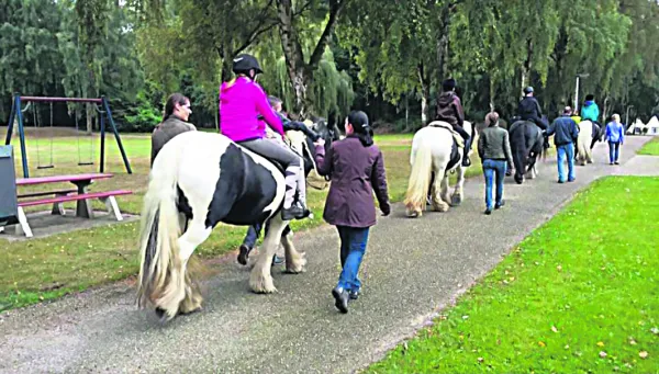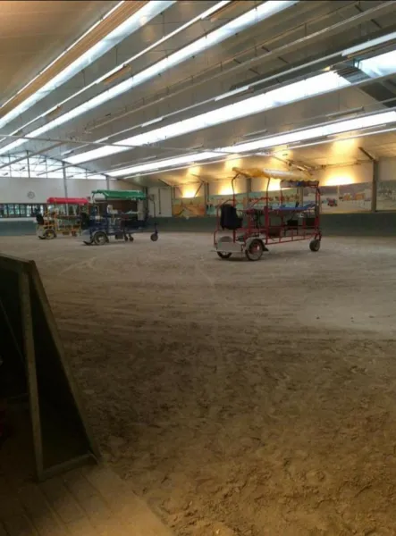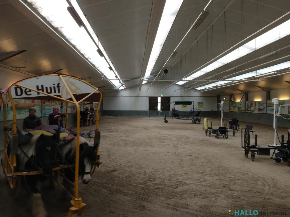 ‘De belevingswereld van de cliënten wordt zo ontzettend veel groter door deze activiteit’ weet ook Angela. ‘Ze komen verder al niet zo veel buiten deur, zien niet zo vaak andere gezichten.’ En natuurlijk spelen ook de paarden een bijzondere rol bij het vergroten van die wereld. Het zijn Ierse Tinkers, een allround en sterk ras, maar met een heel vriendelijk karakter. Ze lopen altijd in dezelfde tweetallen en worden lange tijd intensief getraind, voor ze daadwerkelijk kunnen worden ingezet als volleerd huifbedpaard. Tot slot is de manege ook een welkome ontmoetingsplek voor ouders, begeleiders en medewerkers. Een plaats waar ervaringen uitgewisseld worden met een gezellige ruimte van waaruit de ritten goed te volgen zijn.