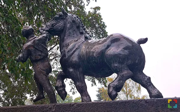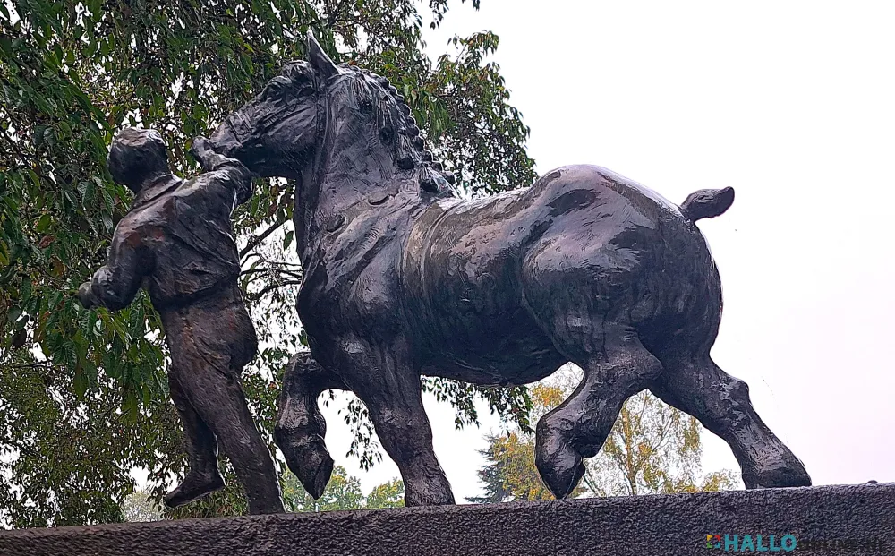Het massieve bronzen Belgisch werkpaard met een voerman die het vasthoudt, staat symbool voor het voormalige agrarische karakter van Neer. Het beeldje was ooit een geschenk van de RABO-bank aan de Neerse gemeenschap. Het werd in 1983 geplaatst bij het gemeentehuis van de toen nog zelfstandige gemeente Neer en werd onthuld door burgemeester Jacobs. In 1997 werd het beeldje vanwege de reconstructie van het kerkplein verplaatst naar de voortuin van Spuitjeshof, waar het nog altijd te bewonderen valt.