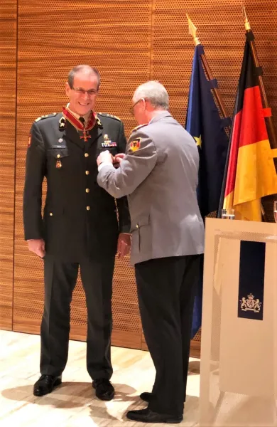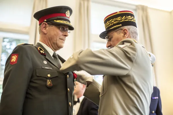 Binnen zijn vak heeft Beulen regelmatig samengewerkt met Europese partners. Duitsland werd al genoemd en voor zijn bijzondere inspanningen daar kreeg hij in 2018 dan ook het ‘Grosse Verdienstkreuz mit Stern. Maar ook voor zijn verdiensten ten aanzien van de Frans-Nederlandse coöperatie ontving hij dit jaar de hoogste onderscheiding van dat land: officier in het Légion d’Honneur. Wanneer we echter vragen naar zijn mening over de regelmatig hoorbare roep om een Europees leger, krijgen we een verrassend antwoord: ‘Dat ga ik in ieder geval niet meer meemaken. Al wordt ik 95. Wat we hebben is een ‘leger van Europeanen’: we werken heel intensief samen met een aantal landen, hebben min of meer dezelfde cultuur, instelling en daar kun je zeker veel mee bereiken.