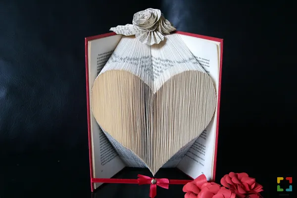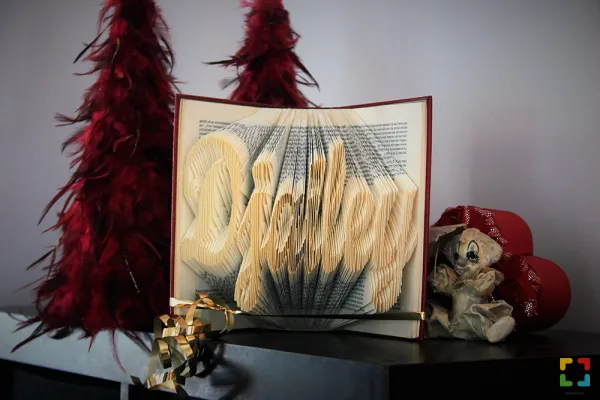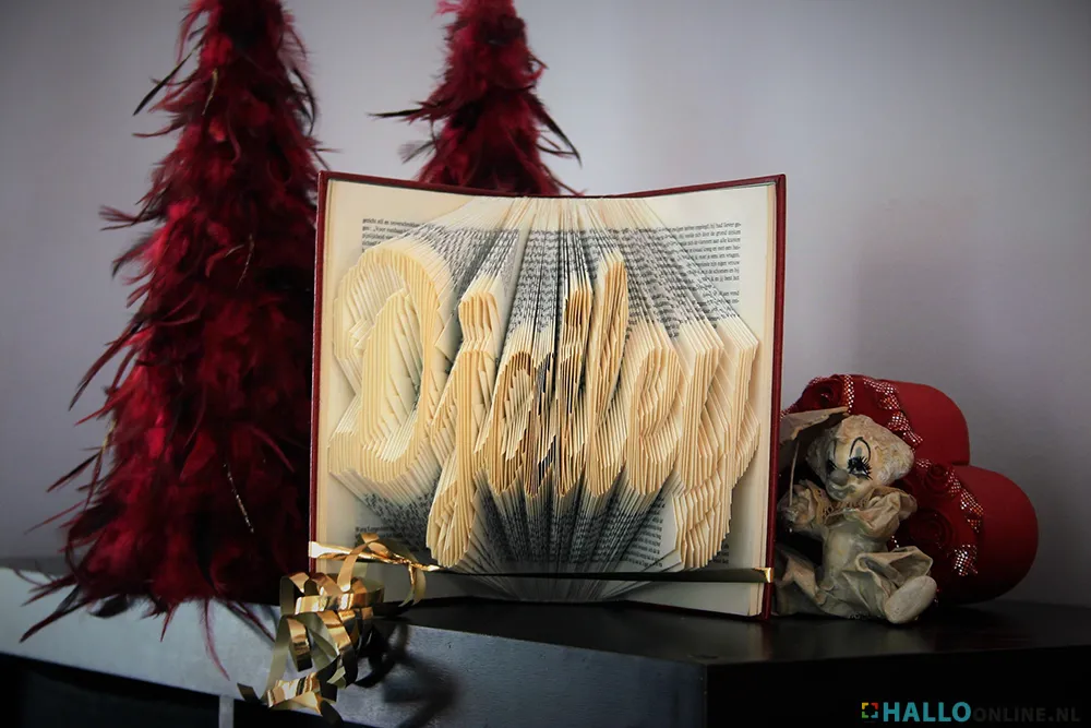Het begon allemaal toen zij kennismaakte met boekvouwkunst, afgeleid van het Japanse origami. Deze techniek heeft zij zich in de loop der jaren helemaal eigen gemaakt. Ze maakt alle patronen zelf. Dat kan een naam, een datum, een tekst of afbeelding zijn maar ook een logo is mogelijk.