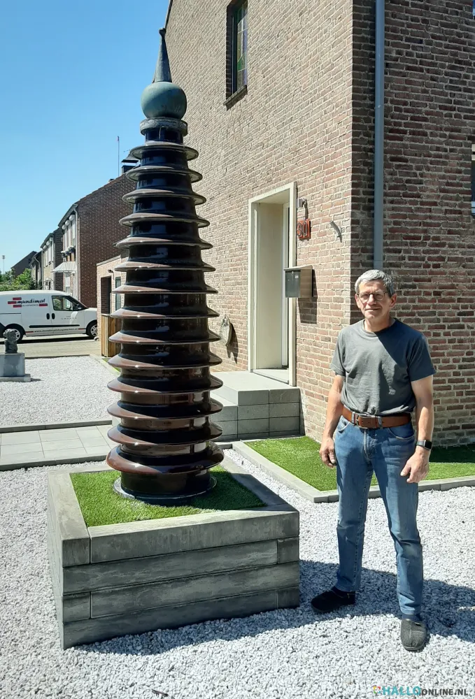 vertelt Louis Coenen, de huidige bewoner van Servaasweg 30, nadat we even hebben aangebeld om te vragen hoe hij aan dit bijzondere object is gekomen."De top is niet origineel. Dat is een loden bol die mijn vader er bovenop heeft gezet", vult hij nog aan. Louis, die ook al weer een hele tijd geleden het huis van zijn vader heeft gekocht, beweert dat zulke isolators nog steeds worden gebruikt:"Kijk maar eens bij het verdeelstation in Maasbracht".