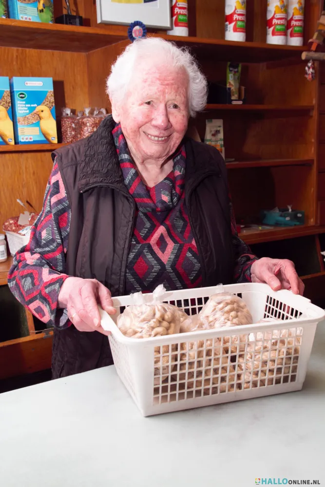 Drie middagen in de week én op zaterdag staat de hoogbejaarde maar nog altijd vitaal ogende en nog steeds zelfstandig wonende mevrouw Truus Smeets op haar vaste stek achter de grote toonbank in ‘haar’ winkel. Komende december dus voor het laatst. Het is een beslissing die ze samen met haar kinderen heeft genomen. “Ik zal er wel echt aan moeten wennen”, zegt mevrouw Smeets. Hobby’s heb ik eigenlijk nooit gehad. Die winkel was mijn lust en mijn leven en de zaak heeft mij er door gesleept toen mijn man plotseling overleed. Nu is het goed geweest. Ik ben 94. De omzet loopt al jaren wat terug. Vogelvoer en dierbenodigdheden kun je tegenwoordig bijna overal kopen. De klanten ga ik zeker missen. Dat zijn veelal mensen uit Roggel of uit de omliggende dorpen. Ook mensen die op de Leistert verblijven, lopen in het visseizoen geregeld binnen. Ze zullen straks allemaal ergens anders naar toe moeten gaan”, concludeert ze met enige weemoed. De sluiting gaat haar niet in de koude kleren zitten.