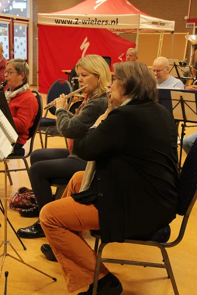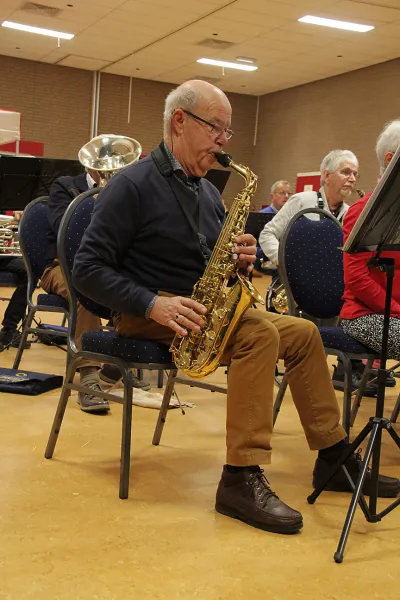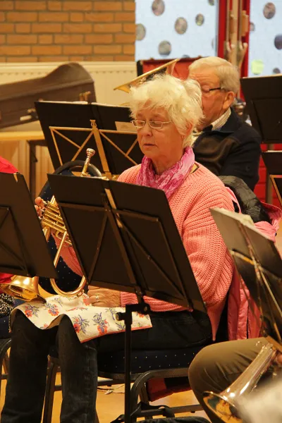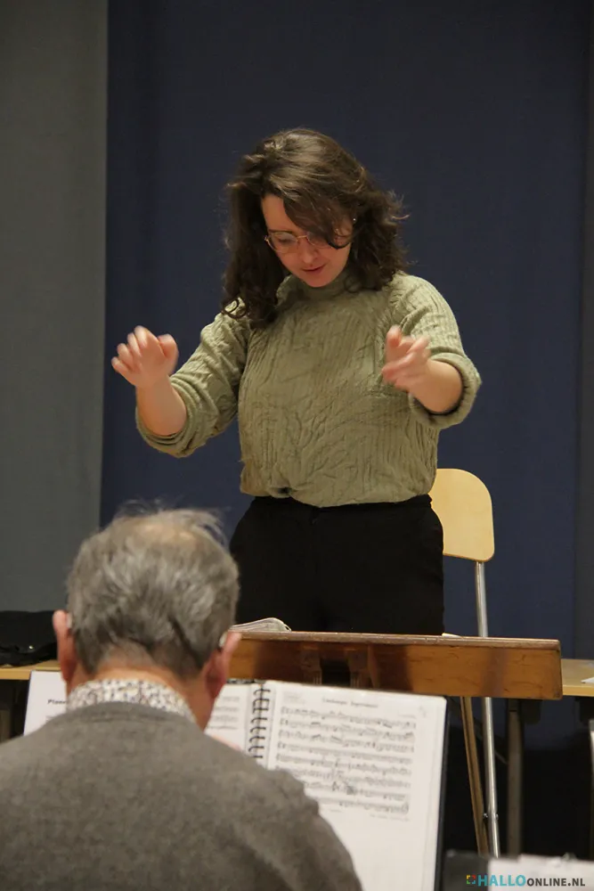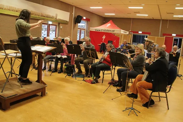 elangrijk is natuurlijk een goede wisselwerking tussen de dirigent en het orkest waarvan de muzikanten al vaak een leven lang ervaring hebben als muzikant. Volgens secretaris Jan Hendriks zit het wat die wisselwerking betreft wel goed. “De dirigent zegt dat we goed luisteren. We zijn zelfs beter bij de les dan de jeugd die tijdens de repetities vaak op hun mobieltje bezig is.” Dirigent Jenny lacht maar kan die opmerking alleen maar bevestigen. “Wat de secretaris zegt klopt wel. Ook de muzikanten hebben hier hun inbreng in de manier van musiceren. Dat is het voordeel als je werkt met mensen die al zo veel ervaring in de muziek hebben. De muzikanten denken mee en samen zijn we bezig om een goed resultaat neer te zetten. Het hoeft niet zo te zijn dat de dirigent alles bepaalt. Die vrijheid is hier en dat is wel fijn. Ik luister vaak naar muziekwerken en denk soms dat bepaalde passages op een andere manier beter passen bij onze manier van spelen,” bekent Jenny. “Wat dat betreft nemen we ons die vrijheid,” om er met een knipoog aan toe te voegen, “maar uiteindelijk beslist de dirigent natuurlijk wel.”