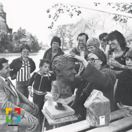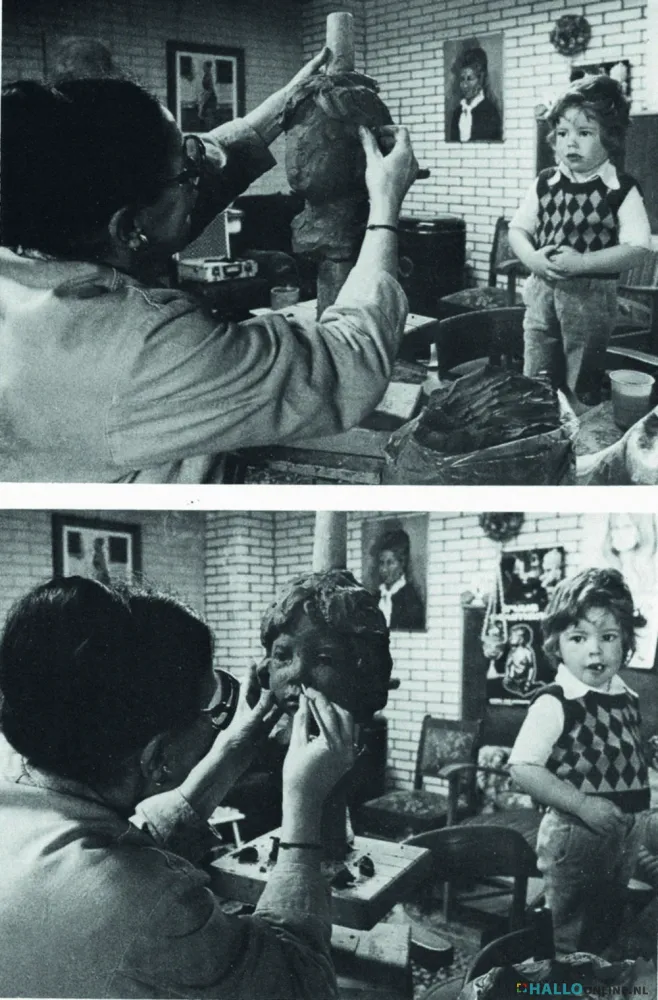 ‘Het was nog maar zo’n ‘knödelke’. Dus ik vroeg hem wat hij aan het maken was’ vertelt Truus, nog steeds zichtbaar ontroerd ondanks de sinds die tijd vervlogen jaren. ‘Ik maak een ‘duufke’ voor in haar hand’, zei het kind op haar beeld wijzend. Het bleek dat de oom van het joch duiven hield. Truus gaf het kleine mannetje daarom en beetje was mee én de opdracht om bij zijn oom goed te gaan kijken hoe een duif er uit ziet. ‘Na de middag kwam hij terug en toen leek het al heel aardig. Ik heb het op de hand van Maria geplaatst en zo gegoten.