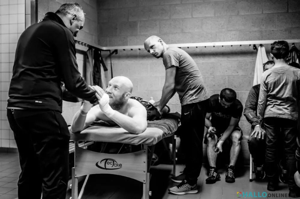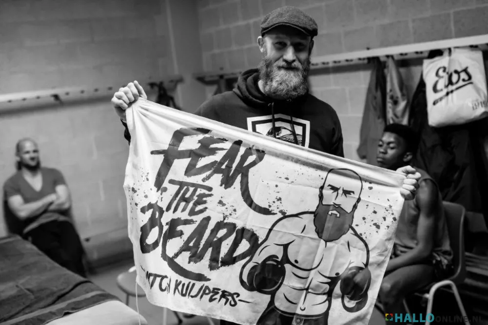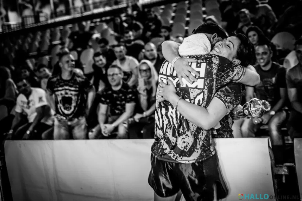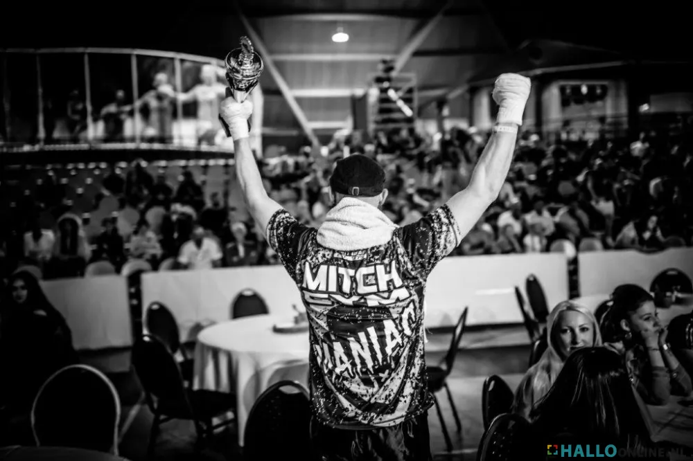 En dat hoogste zou hij bereiken. Hoe meer wedstrijden hij vocht, hoe meer bij Mitch het besef groeit dat hij – als trainingsbeest pur sang – met zijn karakter en incasseringsvermogen voldoende compenseert voor zijn leeftijd. Voor een topsporter is hij immers al ‘op leeftijd’. Het hindert hem niet om professional te worden en al in 2017 de uitdaging aan te gaan voor een Europees titelgevecht in de klasse tot 78 kilo. In Bochum, voor 1500 toeschouwers, tegen een Duitse tegenstander. ‘Die Duitsers dachten waarschijnlijk dat die Nederlander haaienvoer zou zijn. Maar in de vierde ronde moest die gast opgeven. De titel was voor mij. Tien jaar en één maand nadat ik mijn rug brak. Hoe ik reageerde? Dat kun je het beste zelf bekijken...’