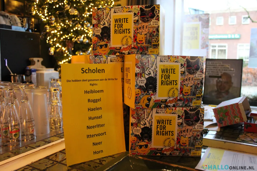 Op 10 december verzorgt het team weer de jaarlijkse activiteit Write for Rights, bij het lokale café TonvannebekkermetGemma. In 1948 werd op die winterdag door de Verenigde Naties de Universele Verklaring van de Rechten van de Mens aangenomen. Daarom wordt dan over de hele wereld extra actie gevoerd voor mensen die onterecht vastzitten. Voor mensen die worden bedreigd vanwege hun werk, mening of gewoon om wie ze zijn. Dat gebeurt door honderdduizenden brieven te schrijven naar koningen, ministers en presidenten, om hen te vragen een einde te maken aan het onrecht. En dat levert succes op, ieder jaar weer. Activisten komen vrij, discriminatie stopt, daders worden berecht. Machthebbers, hoe dictatoriaal ook, staan nu eenmaal niet graag te boek als schenders van mensenrechten.