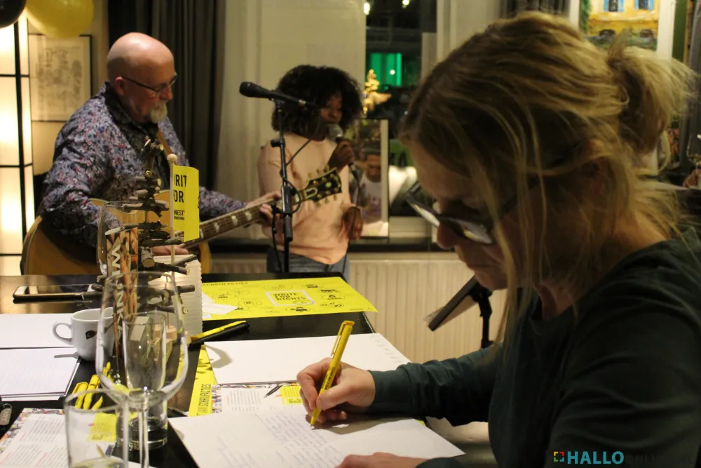 Ze zorgden voor een speciale, hartverwarmende sfeer met hun poëzie, muziek en verhalen. De muzikale zielsverwanten Els Boonen en Funs Douma zijn er zelfs al vanaf het begin bij. Jan Schroën, die laatst nog in jullie blad stond, samen met Fer Koolen, Julien van de Loo en Leentje van der Loo die als LOOse een geweldig singer-songwritersduo vormen, Liesbeth Schroen met haar harp, Jos van Rens die er altijd bij is met zijn gitaar, Ton Custers uit Roermond, mensen van de muziekschool Pop it Up in Heythuysen. Het zijn er gewoon te veel om op te noemen, sorry daarvoor trouwens. Het worden er ieder jaar meer. Ylka Kolken wil deze keer graag meedoen en ook Cas Ronckers probeert zich vrij te maken.’
