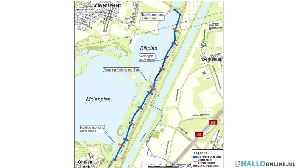 Waterschap Limburg legt een vispassage aan bij Stevensweert. Dat gebeurt in de bestaande natuur aan de oostkant van de Molenplas en de Biltplas. Daar wordt een passage in de vorm van een beek van circa 2 km lang gerealiseerd. We doen dit in nauwe samenwerking met Rijkswaterstaat. Dankzij deze vispassage kunnen vissen makkelijker vanuit de Maas naar de Oude Maas en verder landinwaarts naar de Geleenbeek zwemmen. Waterschap Limburg en Rijkswaterstaat slaan samen met terreinbeheerder Natuurmonumenten de handen ineen om dit knelpunt op te lossen.