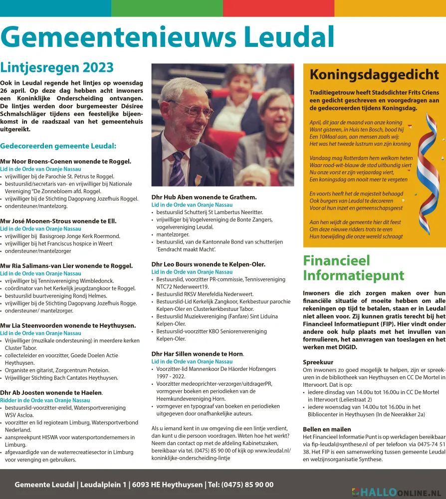 U vindt o.a. de maandelijks informatie, officiële bekendmakingen en nieuwsberichten in HALLO Magazine en op HALLO Magazine Online.nl