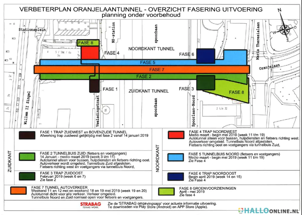 Op maandag 14 januari 2019 start de uitvoering van de tweede fase in het verbeteren van de stationstunnel en is de stationstunnel afgesloten voor al het autoverkeer, behalve lijnbussen.