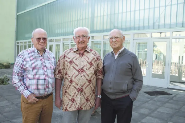 De drie Witte Paters waarmee we op een zonnige septemberochtend aan tafel zitten zijn echter gehuld in een vlotte westerse combinatie, maar zij hebben hun Afrikaanse avonturen dan ook al enige tijd achter zich. Zij verblijven nu in Huize Sint Charles in Heythuysen, ooit het onderkomen van de zusters Franciscanessen. Het zijn sectoroverste Jozef de Bekker, vergezeld door de paters Frans van der Weijst en Piet van der Pas. We zijn aan elkaar voorgesteld door coördinator José Hendriks, die ook aangeschoven is.