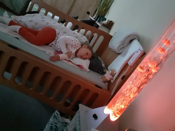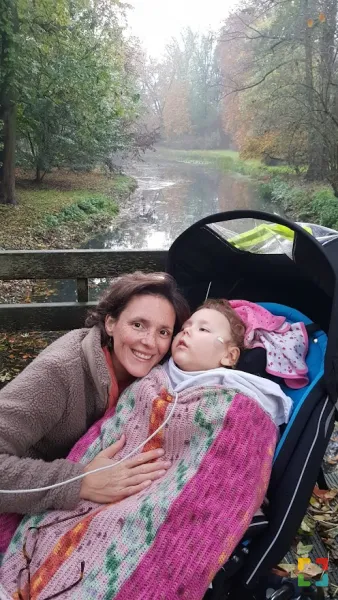 In de knusse huiskamer staat een aangepaste stoel voor Lianne die niet zelfstandig kan zitten. Een zuurstoffles en noodmedicatie staan stand-by. Tijdens ons gesprek heeft Marieke Lianne op haar schoot en probeert haar een beetje yoghurt te laten eten, zodat ze een beetje voedsel via haar mond binnen krijgt. De overige voeding krijgt Lianne via een maagsonde.