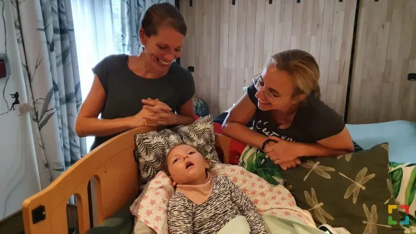 Het legt druk op je relatie en het beperkt je enorm in je sociale contacten. Gelukkig staan we er niet allen voor. We mogen ons gelukkig prijzen met heel betrokken en kundige hulpverleners die heel lief zijn voor Lianne. Ook de gemeente Leudal verdient alle lof, want hun hulp aan ons gaat verder dan de verplichtingen via de WMO-regeling. Dat mag ook wel eens gezegd worden. De gemeente Leudal heeft ons ook geholpen bij de nodige aanpassingen in huis zodat Lianne hier kan wonen en goed verzorgd kan worden.”
