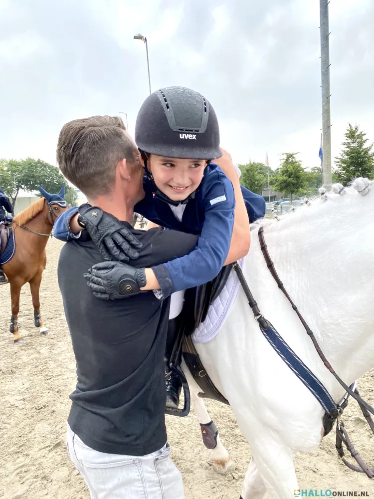 De dag van het Limburgs kampioenschap was volgens Tess hartstikke spannend. Arkan moest er piekfijn bij lopen en werd daarom vooraf grondig gewassen. De manen werden door moeder Debby gevlochten en er werden knotjes gemaakt. Ook de paardentrailer en de rijkleding van Tess moesten pico bello in orde zijn! Tess: “ik zat echt te shaken van de spanning, wat was ik zenuwachtig. Het springen ging heel erg goed en ik bleek zelfs de beste te zijn van meer dan dertig combinaties. Ik schrok me rot toen ik zag dat Tess Buurman op nummer 1 stond.”