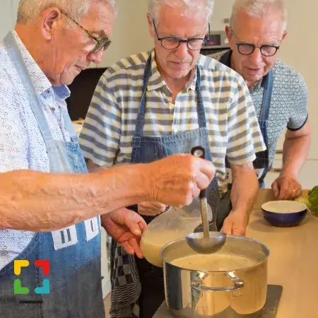 “Natuurlijk houden we rekening met dieetwensen. Zo moet één client glutenvrij eten. Hen Kanders die graag kookt verklapt dat hij in tegenstelling tot Huub het koken thuis aan zijn vrouw over laat. Hij roemt de kookkunst van Huub Hanssen die in zijn ogen ‘culinair begaafd ’is. Huub vertelt dat hij jarenlang kookcursussen heeft gevolgd nadat hij vanwege zijn aflatende gezondheid vroegtijdig moest stoppen met werken. Huub haalt nu heel veel voldoening uit het koken met en voor ‘zijn’ mensen van PSW en hij hoopt dan ook van harte dat er mensen zijn, die na het lezen van dit artikel, zich aangesproken voelen om als vrijwilliger de kookclub te komen ondersteunen. Hij nodigt belangstellenden van harte uit om een keertje naar het activiteitencentrum te komen om eens een kooksessie bij te wonen. “Dan ervaar je zelf hoeveel voldoening het geeft om samen met deze doelgroep te koken”, concludeert Huub Hanssen vol overtuiging tot besluit.