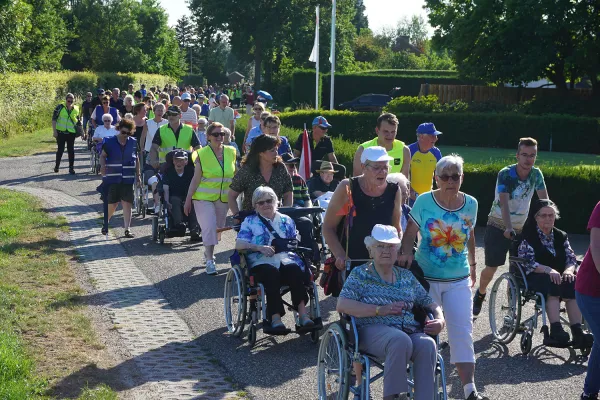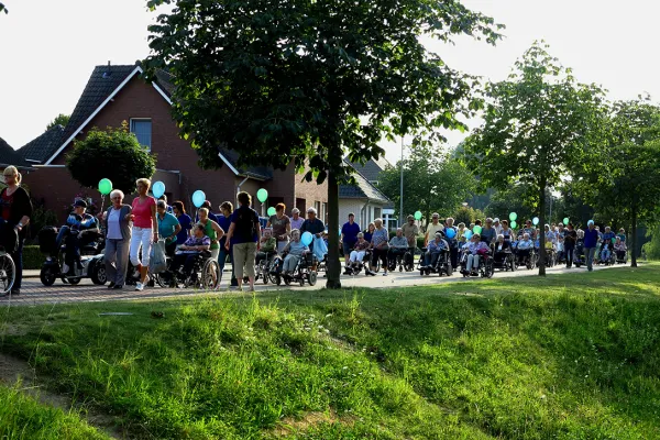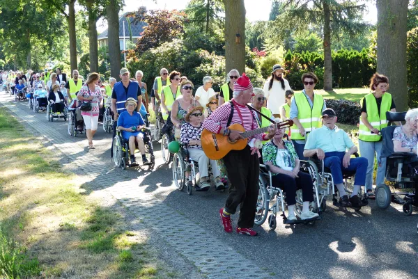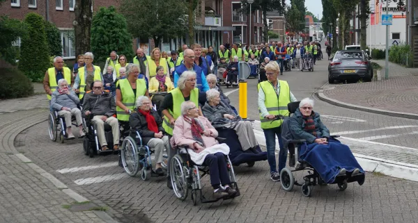Doorpratend over deze suggestie ontstond het idee om een rolstoeltocht te gaan organiseren voor mensen die slecht ter been waren. Onze eerste rolstoeltocht werd een regelrecht succes. Er waren ongeveer 100 deelnemers en die genoten net als wij, van de wandeling en de muzikale afsluiting. We hadden nooit gedacht dat het zo’n happening zou worden.”