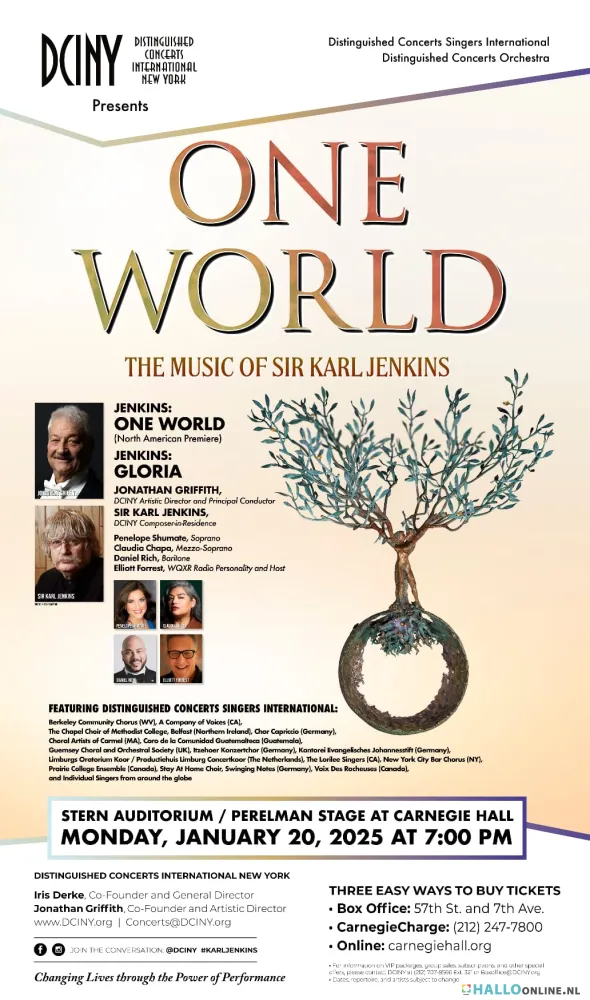 De uitvoering van Karl Jenkins’ compositie One World vond op 20 januari plaats, een erg markant moment. Die dag werd Donald Trump geïnaugureerd als nieuwe president van de Verenigde Staten. Het indrukwekkende koor van Limburgse zangers, aangevuld met zangers uit andere delen van ons land en uit België, Duitsland, Ierland, Colombia en de VS zelf, veroverde Carnegie Hall met een verpletterende uitvoering. Een beter moment om de boodschap van ‘One World’ uit te dragen, kon nauwelijks bedacht worden. Opkomend nationalisme is een gevaar voor samenwerking tussen landen en volkeren, voortdurende oorlogen bedreigen de wereldvrede, en de huidige, onberekenbare Amerikaanse president gooit eerder olie op het vuur dan dat hij voor stabiliteit zorgt.