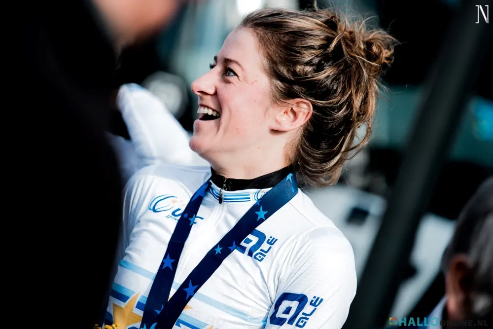Ik was ongelooflijk zenuwachtig voor het Europees kampioenschap. Een van mijn doelen dit jaar was proberen ‘podium te rijden’ op het EK. Ik had het gevoel dat het nu echt moest gebeuren. Het parcours was ongelooflijk modderig, grote delen waren niet te fietsen.