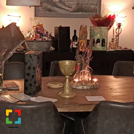 “Kijk maar niet naar de rommel”, zegt Johns echtgenote Henny. “Het was hier het hele weekend volle bak en van opruimen is nog niet veel gekomen.” Met die rommel valt het overigens in huize van Bilsen best mee. Het zijn meer de versieringen in de kleuren rood, geel en groen, bloemen, kaarten en cadeaus die de woonkamer van de familie van Bilsen domineren. Voor een raam aan de straatkant staat pontificaal de grote wisseltrofee die John van Bilsen met zijn eerste plaats bij het kampioenschap in de wacht wist te slepen. Op de huiskamertafel staat de koperen kelk van hulppastoor van Bilsen. Kort voor zijn optreden heeft hij er voor wat mentale ondersteuning portretjes van zijn kleinkinderen in geplakt. Terugblikkend op zijn prestatie zitten John en Henny op deze vroege maandagmorgen nog volop na te genieten. Veel rust zullen ze de komende tijd niet krijgen. Johns overwinning is hot news en de aanvragen voor een optreden van de kampioen stromen binnen. “Niet alleen voor dit carnavalsseizoen, maar ook al voor 2025 en 2026”, weet Henny die de agenda van John beheert.