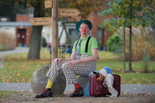 ‘En zo werkt dat dus’ lacht Jeroen. ‘Je ziet dat vooraf plannen bedenken geen zin heeft.’ Om deze aanpak goed te laten werken, gaat het zelfs zo ver dat hij voor Ties een compleet levensverhaal uit de hoge hoed getoverd heeft. Daarbij wordt hem niets aangereikt. Zo heeft hij zelf ontdekt dat Ties geboren is in Pollewop, in huisje van luciferdoosjes woont en twaalf broers en dertien zussen heeft. ‘Een vast verhaal waar je op kunt terugvallen helpt je goed, bijvoorbeeld in contact met bewoners die nog redelijk talig zijn’ verduidelijkt hij. Na het werk is er wel enige tijd in zijn kamertje nodig om van Ties weer te transformeren naar Jeroen. Maar dat helpt hem dan weer om alle emoties los te laten en terug te keren naar het leven van de nuchtere, maar betrokken en enthousiaste jongeman die hij is.