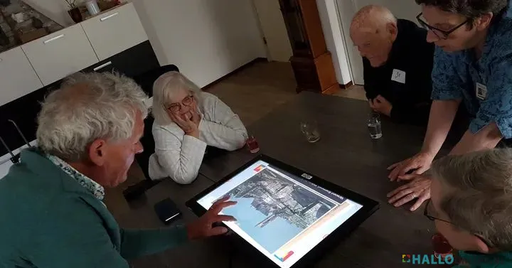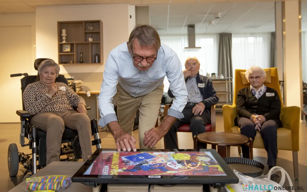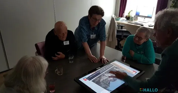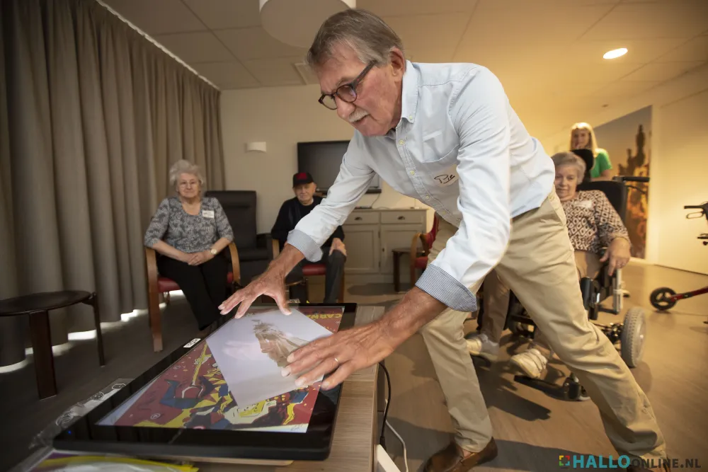 Pie Veugen: “Een bijeenkomst in een zorginstelling duurt ongeveer een uur en soms ook wel iets langer. De tijd vliegt voorbij. Er zijn maximaal tien deelnemers die hiervoor geselecteerd zijn door de activiteitenbegeleiding van het huis. De mensen zitten in een huiskamersetting rondom een lage tafel waarop de museumtafel ligt. Iedereen kan alles goed zien. We kunnen het beeld ook naar alle kanten draaien. Na een inleidend gesprekje, waarbij ik mij voorstel als Pie, start ik de museumtafel.”