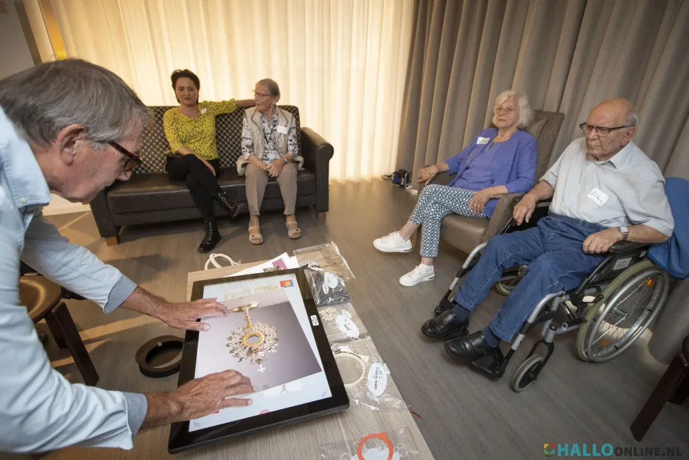 In een instelling in Roermond liet ik onlangs een afbeelding van een monstrans zien. Daarna hebben we zeker een uur lang met elkaar gesproken over de processies die de mensen zich nog heel goed konden herinneren uit hun jeugd. Door op deze manier met een kleine groep bezig te zijn, ontstaat ook echt interactie. De mensen reageren op elkaar. Je ziet mensen plezier beleven aan deze duik in het verleden. Herinneringen ophalen op deze manier, geeft de deelnemers duidelijk een warm gevoel.”