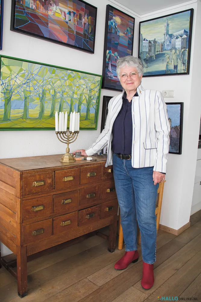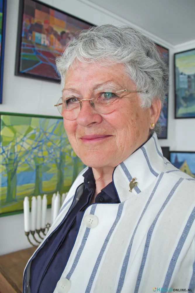 Gemma de Haan toont mij ook een autobiografie van haar inmiddels overleden (half)broer David. Ze is verrast wanneer ik haar vertel dat ik haar broer ooit heb ontmoet. 27 jaar geleden zocht hij contact met mij naar aanleiding van een videodocumentaire over de oorlogsgeschiedenis van Leveroy. David/Dick de Haan verbleef onder de naam Gijs van de Sande een tijd als onderduiker in dit dorp. Al deze deprimerende oorlogsdocumentatie staat in schril contrast met de vele opvallend kleurrijke schilderijen van Gemma’s hand die de ruimte opfleuren. Oud-lerares Gemma de Haan (1946) is duidelijk een getalenteerde schilderes. Vandaag gaat het echter niet over haar hobby, maar praat ze na jaren stilzwijgen openhartig over haar ouders en haar deels Joodse roots.