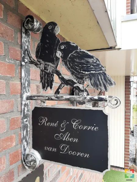 Hij heeft een nieuwe levensvreugde gevonden in de verzorging van zijn parkieten, zijn tweede hobby. "Ik kan uren naar die vogeltjes kijken. Hoe slim die parkietjes zijn en hoe lief de koppeltjes voor elkaar kunnen zijn. En bijten dat ze kunnen met hun snavels, ongelofelijk. Ik praat tegen ze en ik zou er graag eentje willen hebben die terug kon praten". Met weemoed denkt hij nog wel eens terug aan de dagen dat hij volop bezig was met zijn aluminium creaties. "Ik word soms nog wel eens gevraagd, maar ik kan dus echt niets meer maken. Wel heb ik nog ongeveer 35 aluminium naamplaten van jagers, paardjes, vogels, katten en honden op de zolder liggen. Mochten er lezers zijn die interesse hebben dan kunnen ze mij bellen". Ik beloof René dat ik zijn oproep in mijn artikel meeneem.