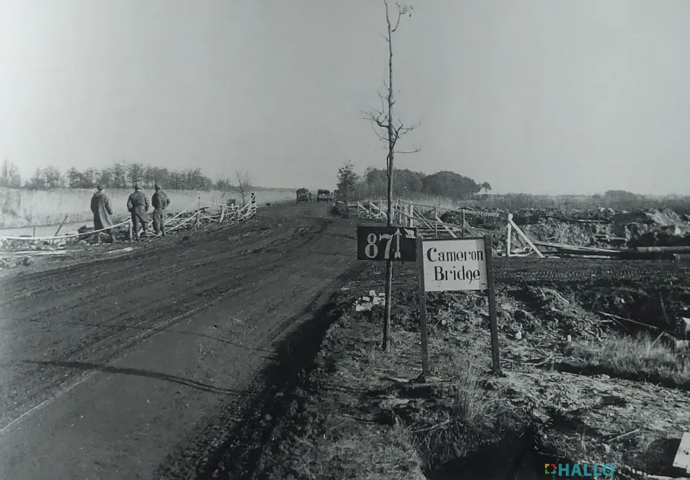 Na de verovering van Walcheren namen de geallieerden het initiatief weer in handen en kwam de bevrijdingswals opnieuw in beweging. Tijdens de 'Battle of the Canals' werden op 14 november de Noordervaart en het Kanaal Wessem-Nederweert overgestoken en op 17 november vestigden de Schotten van het 5de Cameron Highlanders een bruggenhoofd in de oosthoek van het Afwateringskanaal met de Noordervaart. Het bruggetje over het Afwateringskanaal was door de Duitsers kort van te voren opgeblazen, maar de Schotten wisten het kanaal, door hen “Zig Canal” genoemd, over de intacte sluisdeuren over te steken. Vanwege een gebrek aan munitie en omdat de schuttersputjes onmiddellijk volliepen met water kostte het de grootste moeite om dit vroegtijdige bruggenhoofd op de oostoever vast te houden. De gevechten vonden namelijk plaats in één van de natste herfstmaanden van de 20ste eeuw. In de nagelaten berichten voeren de woorden 'mud and water', samen met de door de Duitsers gelegde 'mines', de boventoon. Dankzij het ondersteunende vuur van hun tanks en artillerie wisten de Camerons hun vooruitgeschoven positie ternauwernood in handen te houden. Al vlug werd er door de genie een Baileybrug aangelegd om zwaar militair materieel over het kanaal te brengen, die naar de heldhaftige verdedigers de 'Cameronbridge' werd genoemd.