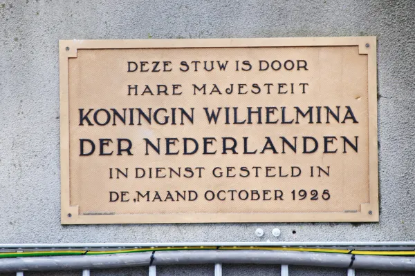 In het dagblad De Nieuwe Koerier van donderdag 22 oktober 1925 kunnen we lezen dat rond 13.00 uur de koninklijke trein stopte bij het station van Linne om vandaar het laatste stuk naar de stuw per auto af te leggen. Het spreekt voor zich dat de inwoners van Linne zich van hun beste kant lieten zien. Vanaf de stopplaats tot ver buiten de bebouwde kom waren de straten uitbundig versierd oranje guirlandes en erebogen. Ondanks de neer gutsende regen waren honderden mensen op het koninklijk bezoek afgekomen om de koninklijke familie toe te juichen, maar vooral ook om ze een keer in levende lijve te zien. Minister van Waterstaat mr. Max Bongaerts, gouverneur Baron van Hövell tot Westerflier, burgemeester Geldrop van Linne en een aantal functionarissen van Rijkswaterstaat vormden het ontvangstcomité bij de stuw. Bij aankomst van het koninklijk gezelschap inspecteerde Hare Koninklijke Hoogheid koningin Wilhelmina de erewacht van het Landstormcorps Limburgsche Jagers gevormd door vrijwilligers uit Midden Limburgs dorpen rond Linne. Na een muzikaal welkom door Harmonie Lentekrans Linne en door de Linner schooljeugd was het moment aangebroken om de nieuwe stuw officieel in gebruik te nemen. Daarvoor onthulde koningin Wilhelmina een plaquette, bevestigd tegen de oostelijke stuwpeiler en werden honderden duiven losgelaten zo meldt de Nieuwe Koerier van 22 oktober 1925. Komend te voet of per fiets van Linne over de fietsbrug richting Osen is de gedenkplaat tegen de peiler duidelijk te zien.